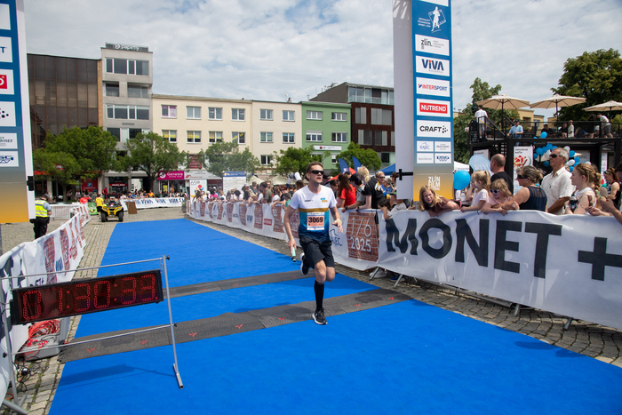 Desátý ročník Festivalového půlmaratonu MONET + Zlín 2025 ovládli favorizovaní Keňané hájící barvy maďarského Benedek Teamu. První příčku vybojoval v čase 1:10:00 Kipkemoi Kennedy Rono, druhou obsadil se ztrátou 2 minut a 14 sekund Kipchirchir Amos Kemboi, bronzovou pozici vybojoval Filip Vabroušek (AK Zlín, 1:15:55), čtvrtý byl díky času 1:16:39 Marek Brulík z Uherského Brodu, pátý skončil zlínský vytrvalec Andrej Višněvský (Fyzio Step, 1:19:37).